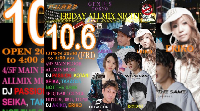 全館開放FULL営業!MAIN/SUB両フロアOPENのFULL OPEN STYLEでお送りします! 今回もジニアス東京が誇る人気実力派DJ陣ならではの爆上げ GROOVE 感を体験してください!!