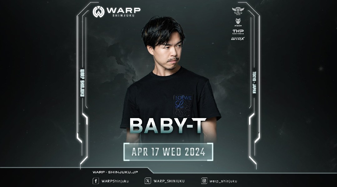 日本のダンスミュージックシーンの中でもひときわボーダーレスな活躍を見せる「BABY-T」がWARP SHINJUKUを盛り上げる。